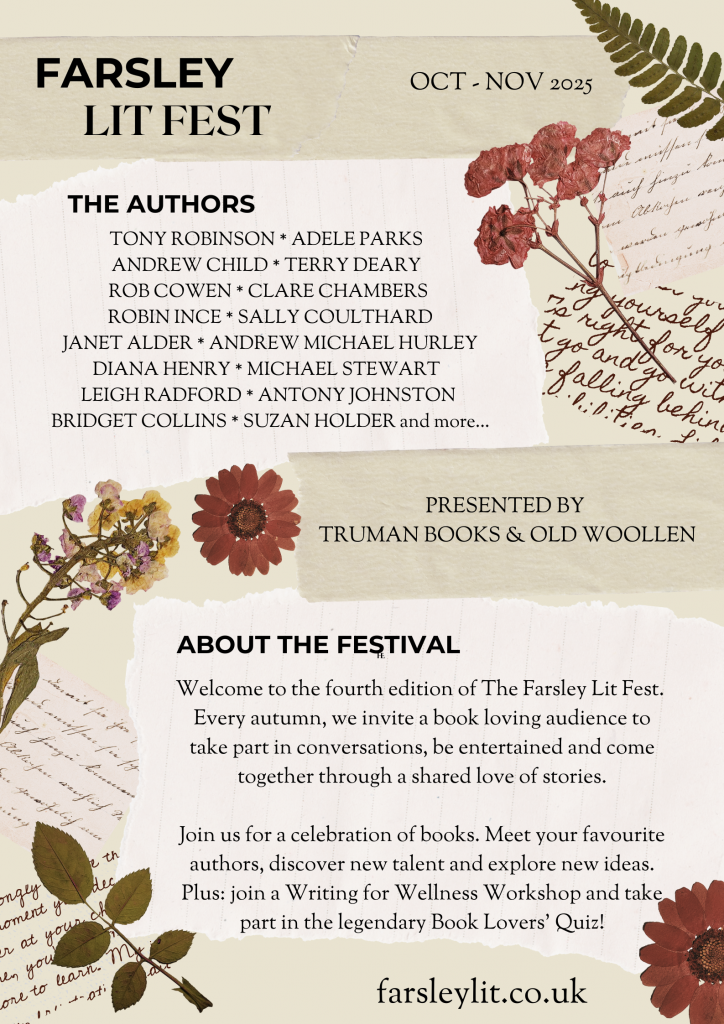 Welcome to the fourth edition of The Farsley Literature Festival, brought to you by Truman Books and Old Woollen, along with our friends from in and around Farsley.